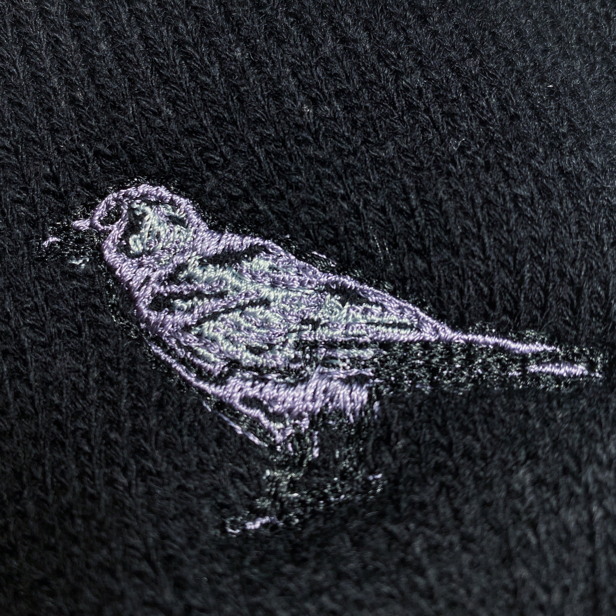 Black fingerless gloves, embroidered to kookify and warm chilly hands.